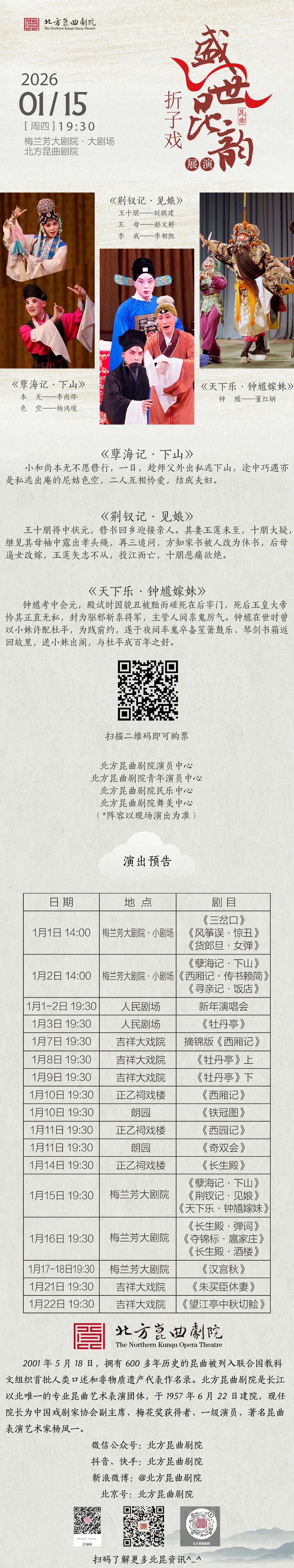 氍毹摘锦|1月15日北方昆曲剧院经典折子戏《下山》《见娘》《钟馗嫁妹》